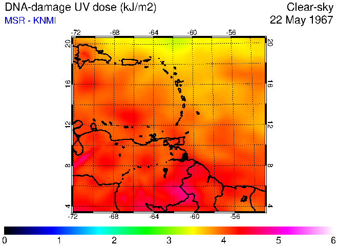 Clear-sky UV index:   erythemal