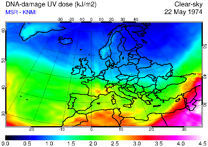 DNA-damage UV dose of 22 May 1974