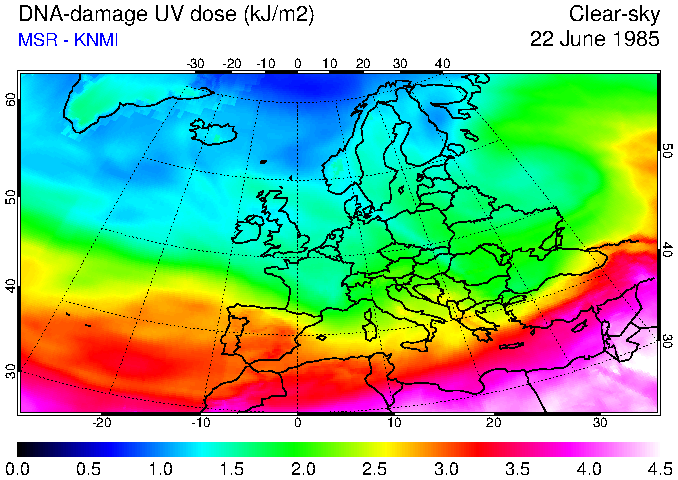 DNA-damage UV dose of 22 June 1985