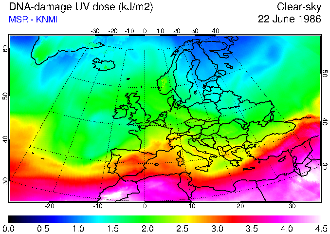 DNA-damage UV dose of 22 June 1986