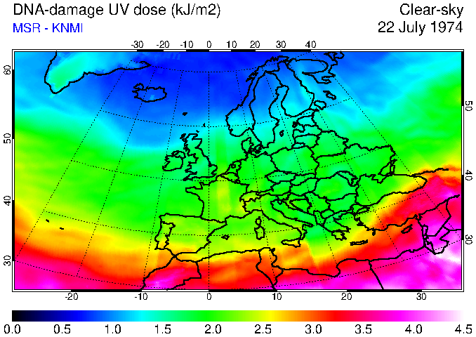 DNA-damage UV dose of 22 July 1974