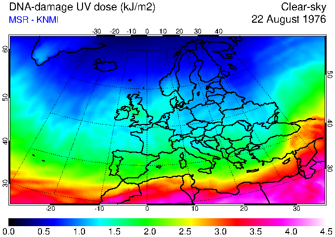 DNA-damage UV dose of 22 August 1976