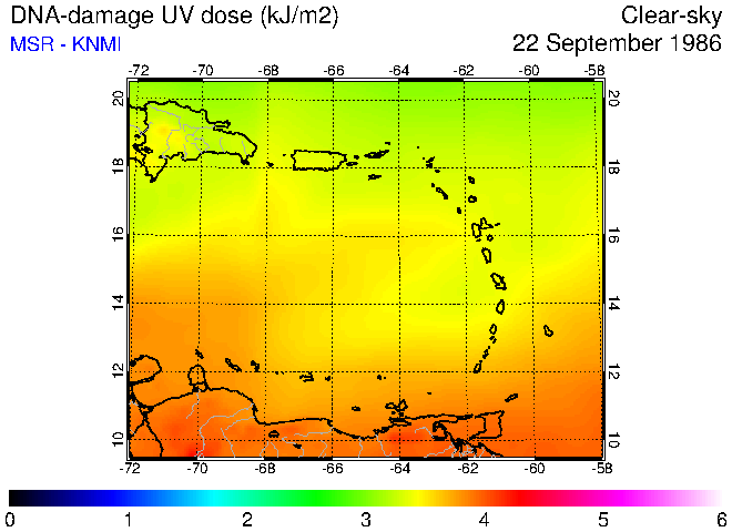 Clear-sky UV index:   erythemal