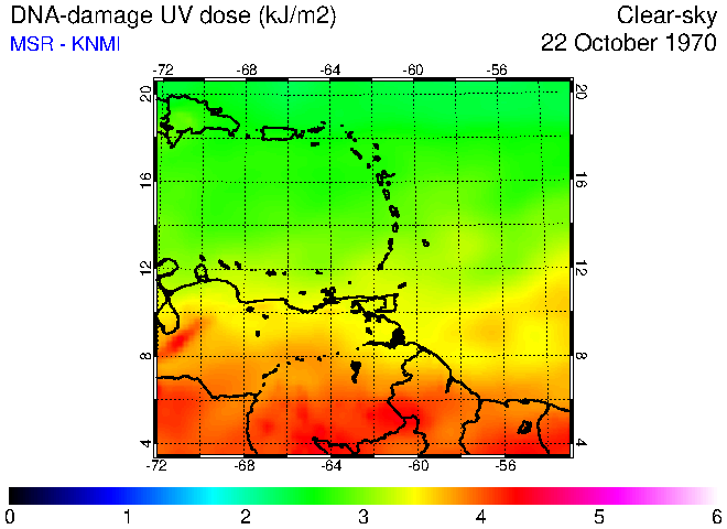 Clear-sky UV index:   erythemal