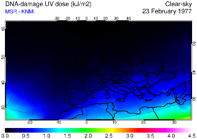 DNA-damage UV dose of 23 February 1977