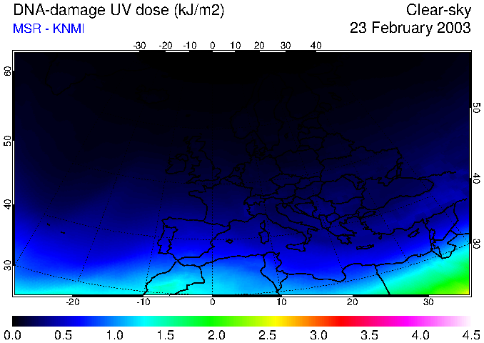 DNA-damage UV dose of 23 February 2003