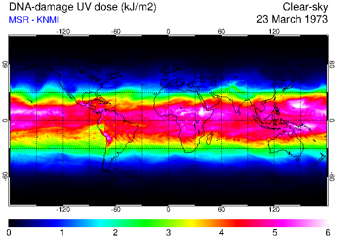 Daily UV dose:   erythemal  |  vitamin-D  |  DNA-damage