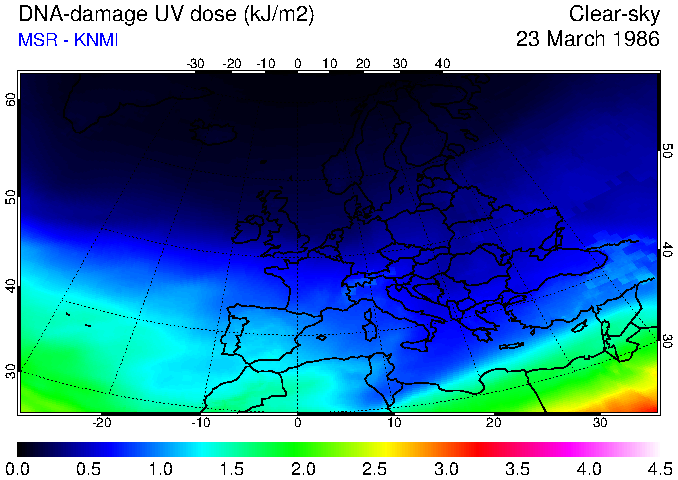 DNA-damage UV dose of 23 March 1986