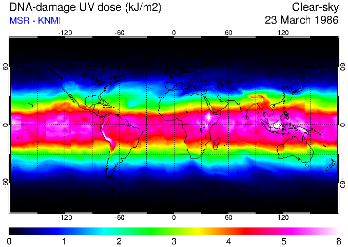Daily UV dose:   erythemal  |  vitamin-D  |  DNA-damage