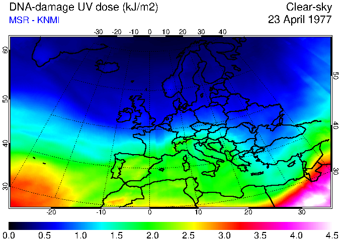 DNA-damage UV dose of 23 April 1977
