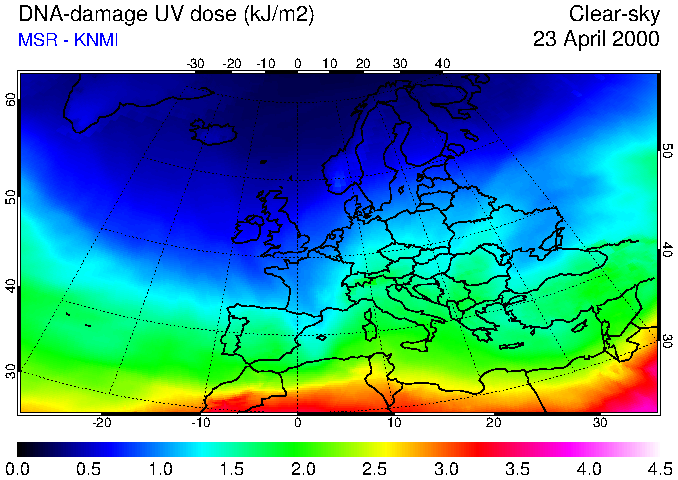 DNA-damage UV dose of 23 April 2000