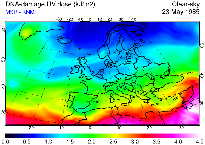 DNA-damage UV dose of 23 May 1985