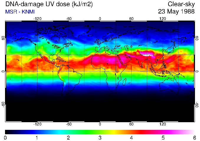 Daily UV dose:   erythemal  |  vitamin-D  |  DNA-damage