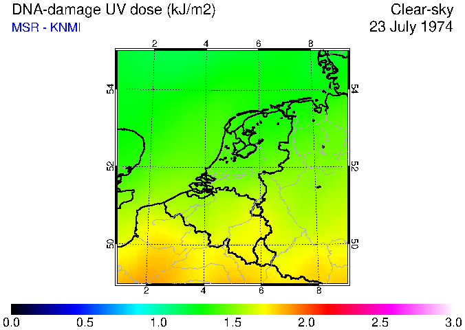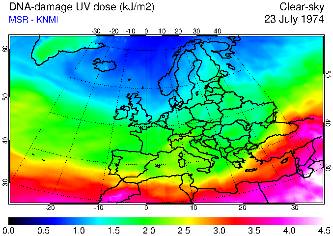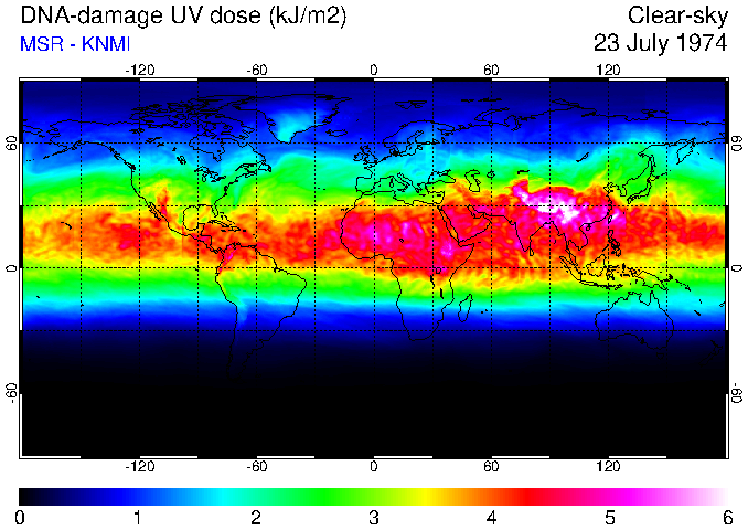 DNA-damage UV dose of 23 July 1974
