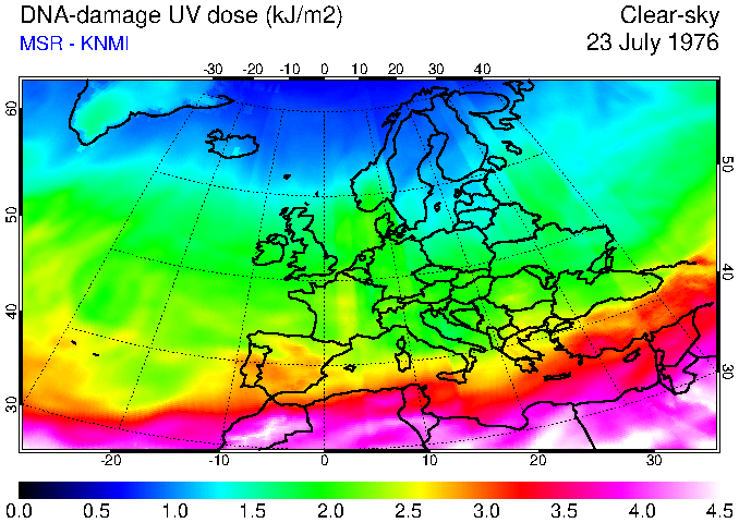 DNA-damage UV dose of 23 July 1976