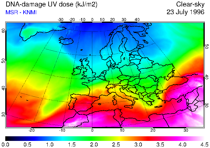 DNA-damage UV dose of 23 July 1996