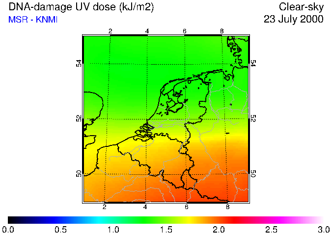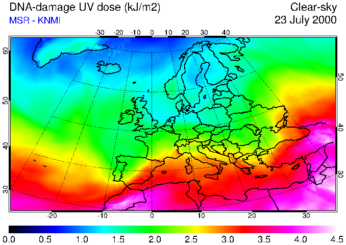 DNA-damage UV dose of 23 July 2000