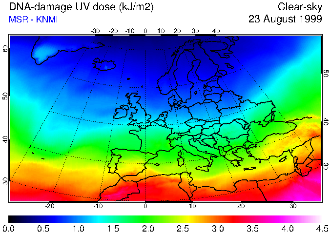 DNA-damage UV dose of 23 August 1999