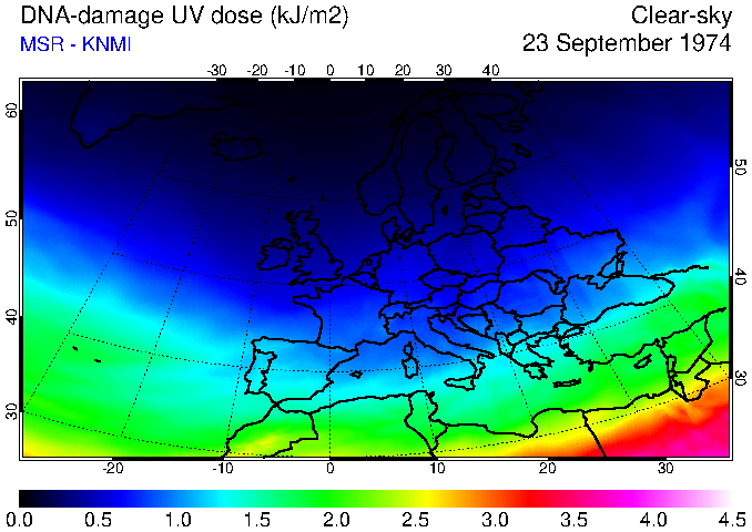 DNA-damage UV dose of 23 September 1974