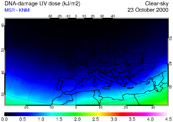 DNA-damage UV dose of 23 October 2000
