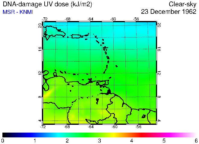 Daily UV dose:   erythemal  |  vitamin-D  |  DNA-damage