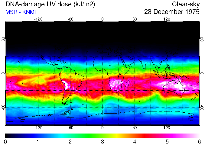 DNA-damage UV dose of 23 December 1975