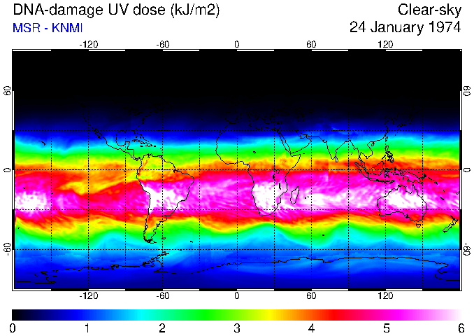 DNA-damage UV dose of 24 January 1974