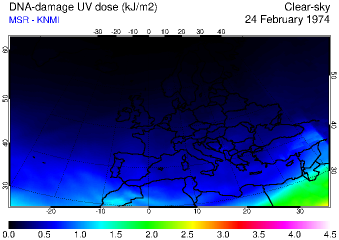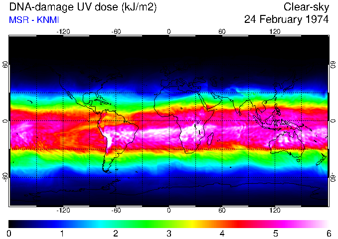 DNA-damage UV dose of 24 February 1974