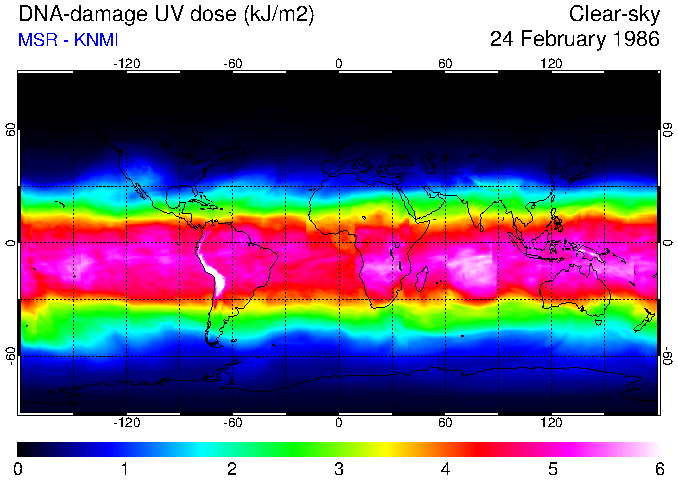 DNA-damage UV dose of 24 February 1986