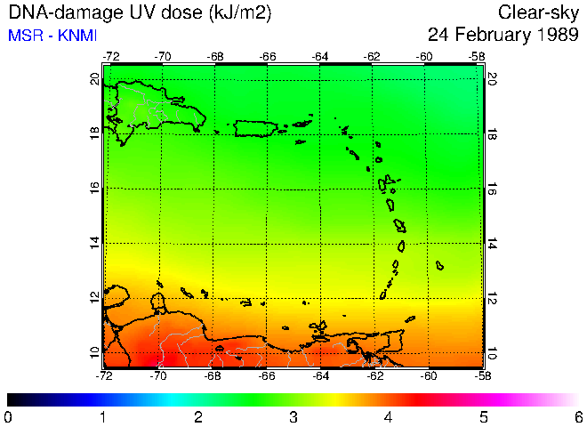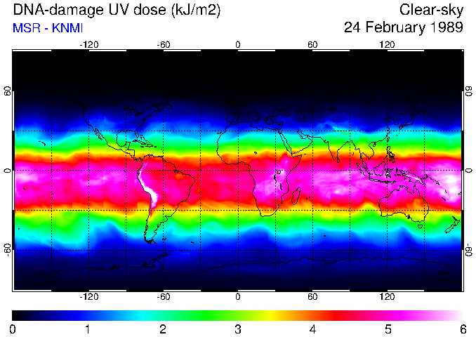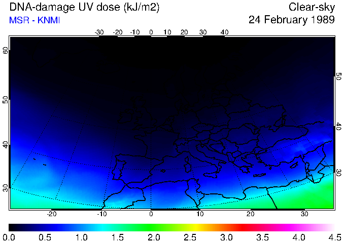 DNA-damage UV dose of 24 February 1989