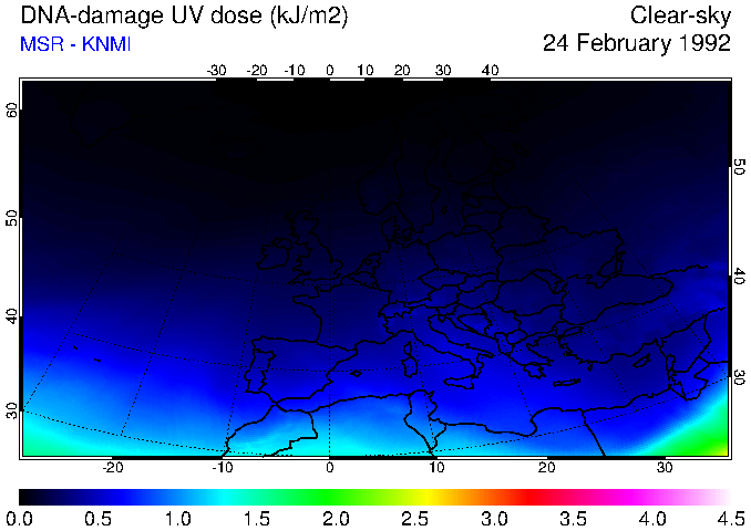 DNA-damage UV dose of 24 February 1992