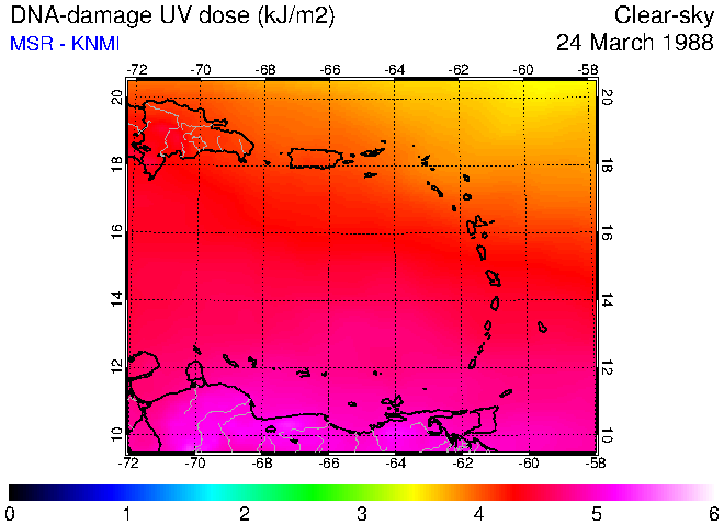 Clear-sky UV index:   erythemal