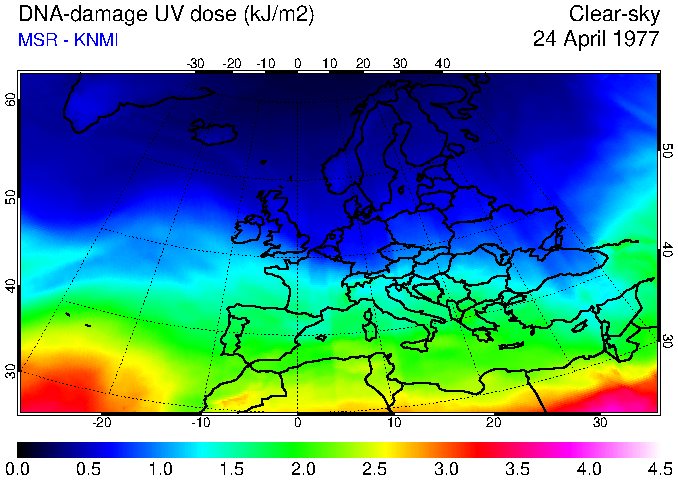 DNA-damage UV dose of 24 April 1977