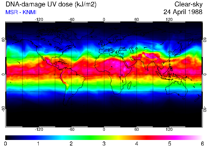 Daily UV dose:   erythemal  |  vitamin-D  |  DNA-damage