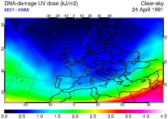 DNA-damage UV dose of 24 April 1991