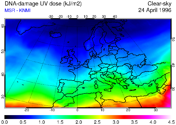 DNA-damage UV dose of 24 April 1996