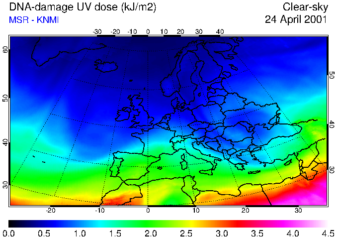 DNA-damage UV dose of 24 April 2001