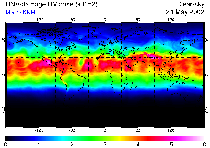 Daily UV dose:   erythemal  |  vitamin-D  |  DNA-damage