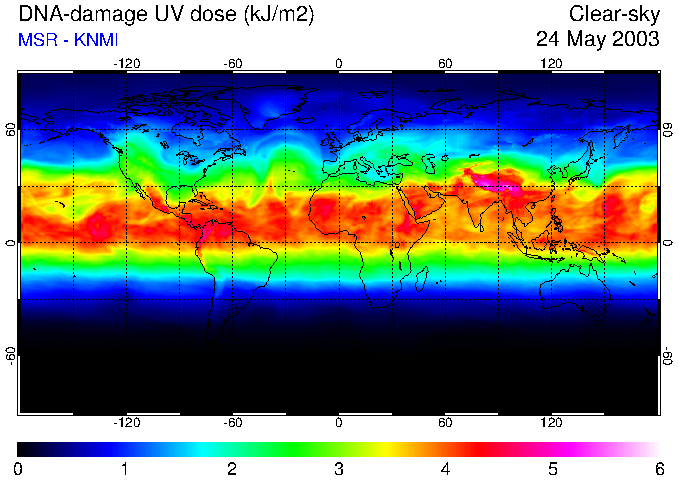 Daily UV dose:   erythemal  |  vitamin-D  |  DNA-damage