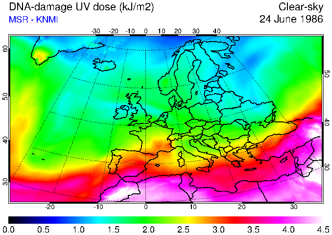 DNA-damage UV dose of 24 June 1986