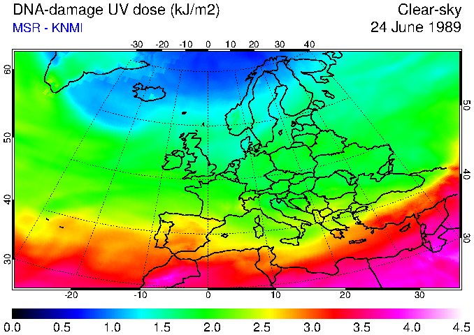 DNA-damage UV dose of 24 June 1989