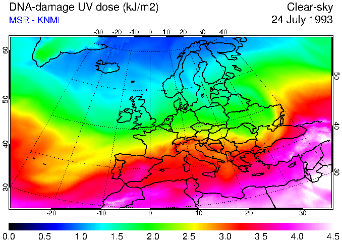 DNA-damage UV dose of 24 July 1993