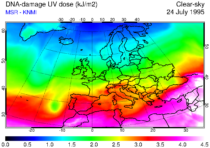 DNA-damage UV dose of 24 July 1995