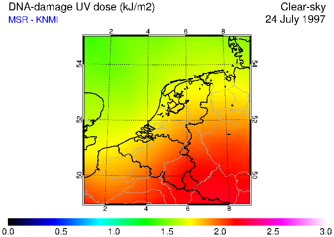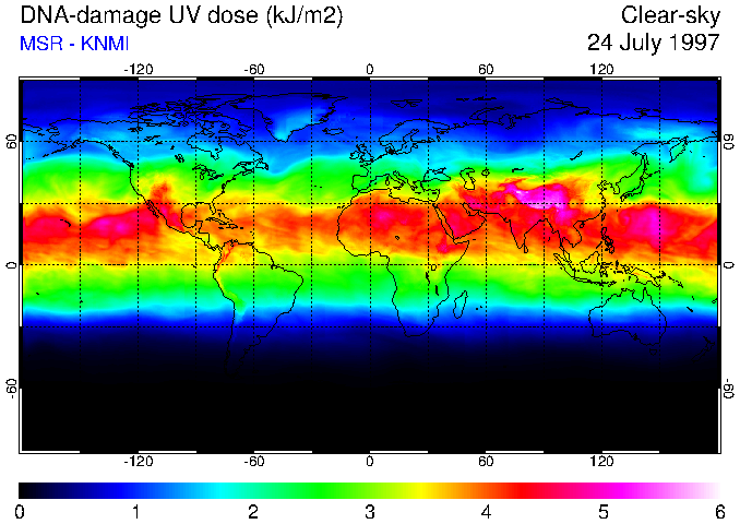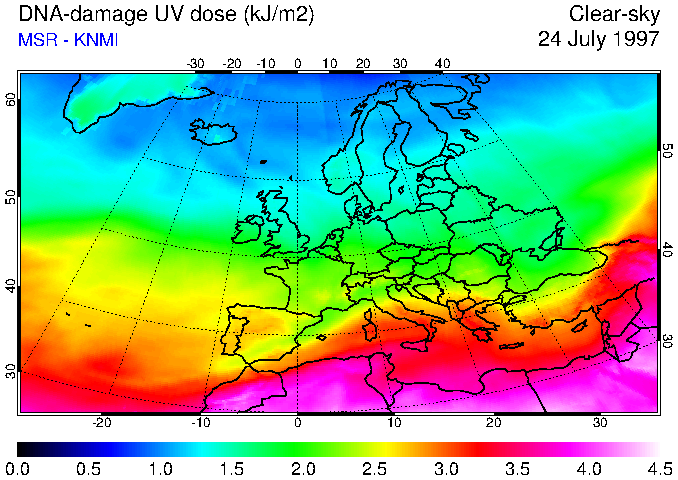 DNA-damage UV dose of 24 July 1997