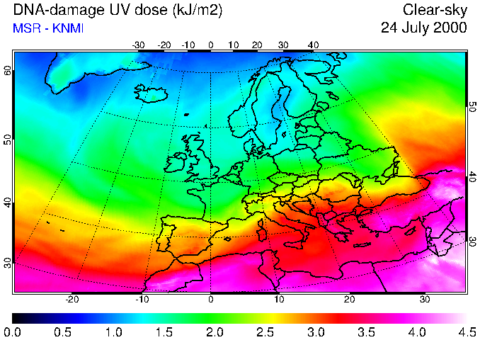 DNA-damage UV dose of 24 July 2000