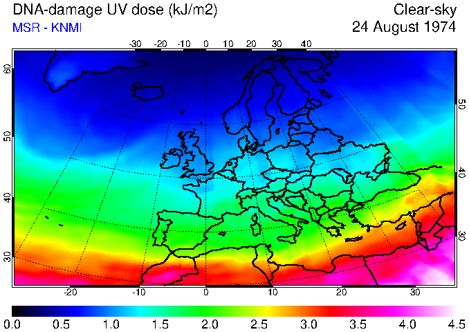 DNA-damage UV dose of 24 August 1974