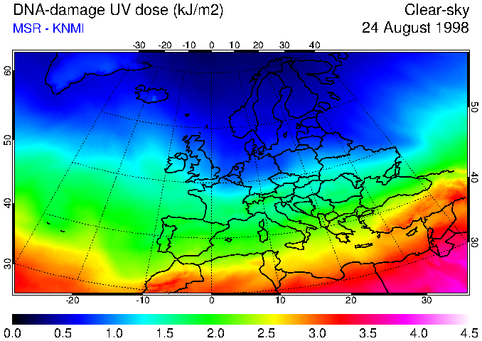 DNA-damage UV dose of 24 August 1998