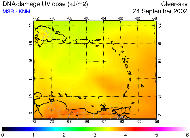 Clear-sky UV index:   erythemal