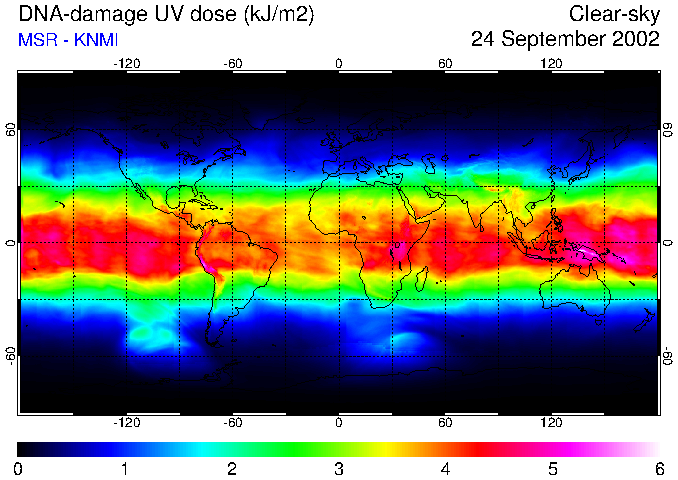 Daily UV dose:   erythemal  |  vitamin-D  |  DNA-damage