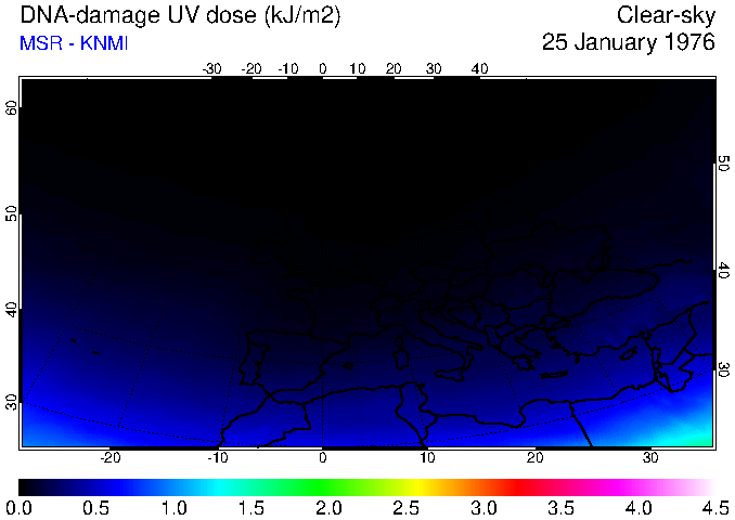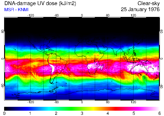 DNA-damage UV dose of 25 January 1976